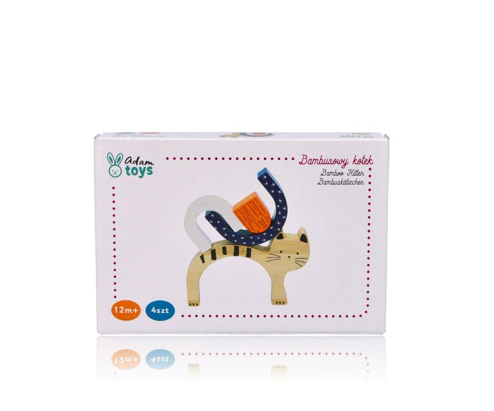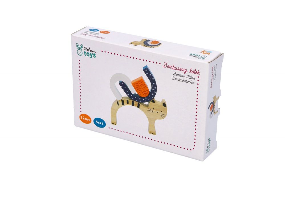 Klocki można układać również na płasko, tworząc ciekawe wzory. Dodatkowo postać Kotka pozwoli na zabawę nim jak figurką. Wiek: 12m+ Wymiary: 16 x 11 x 2 cm Referencja: N2024 Deklaracja zgodności CE