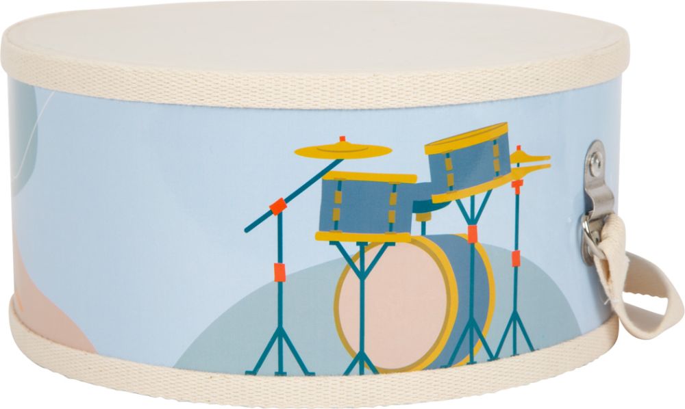 Klasyczny bębenek marki Small Foot Design w ładnej niebiesko-kremowej kolorystyce z pewnością przypasuje maluchom pod kątem wizualnym. Bębenek można zawiesić na szyi, dzięki dołączonemu paskowi (możliwość regulacji).