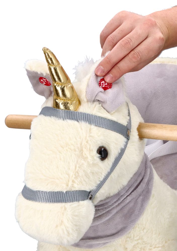 Wymiary opakowania: 55 x 45 x 32cm Wysokość do siedziska ok.25cm Zabawka wymaga dwóch baterii typu AA. Kieszeń z bateriami schowana pod brzuchem konia. Referencja: GS6099A Deklaracja zgodności CE