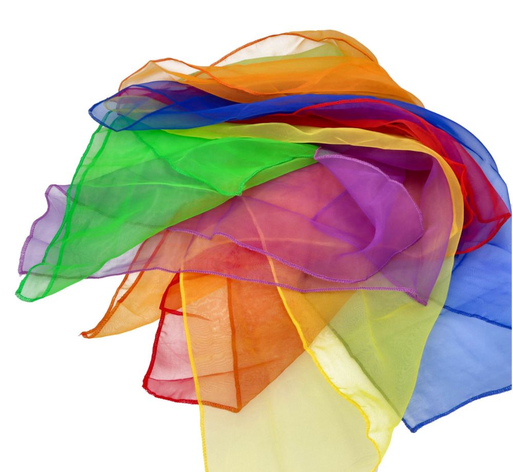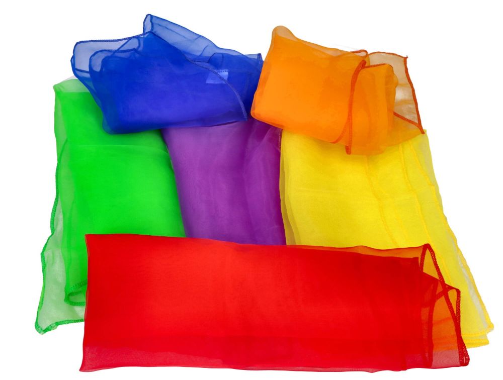 Przedstawiamy zestaw kolorowych chustek do zabaw ruchowych.