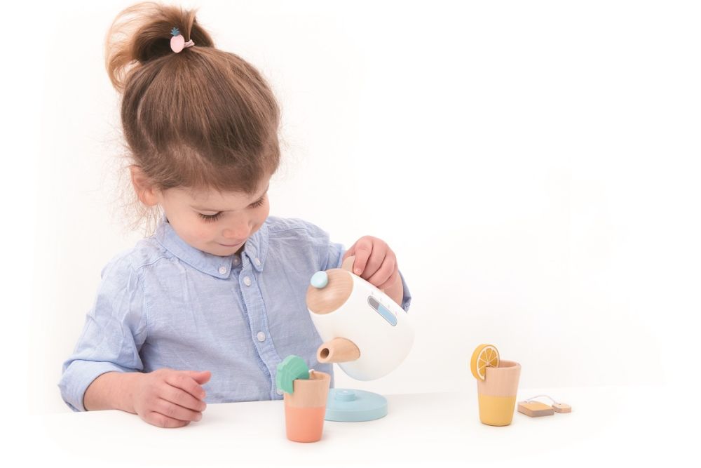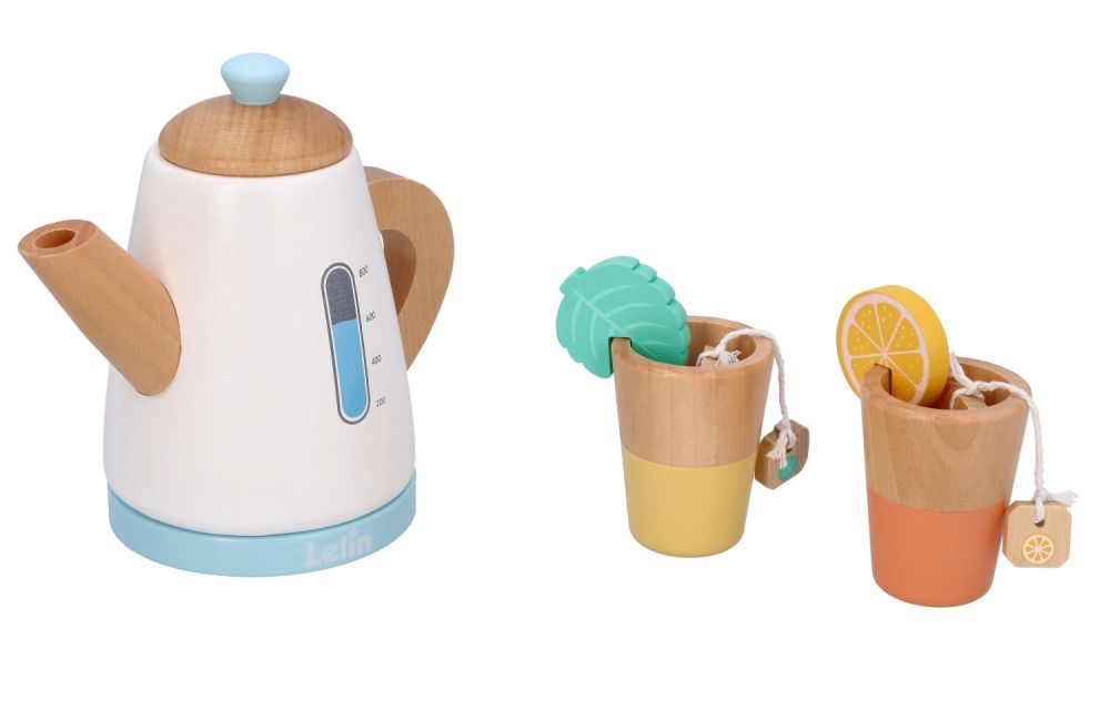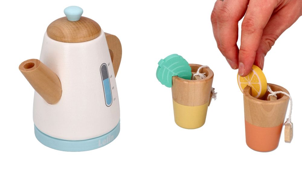 Drewniany zestaw herbaciany z czajnikiem i kubeczkami