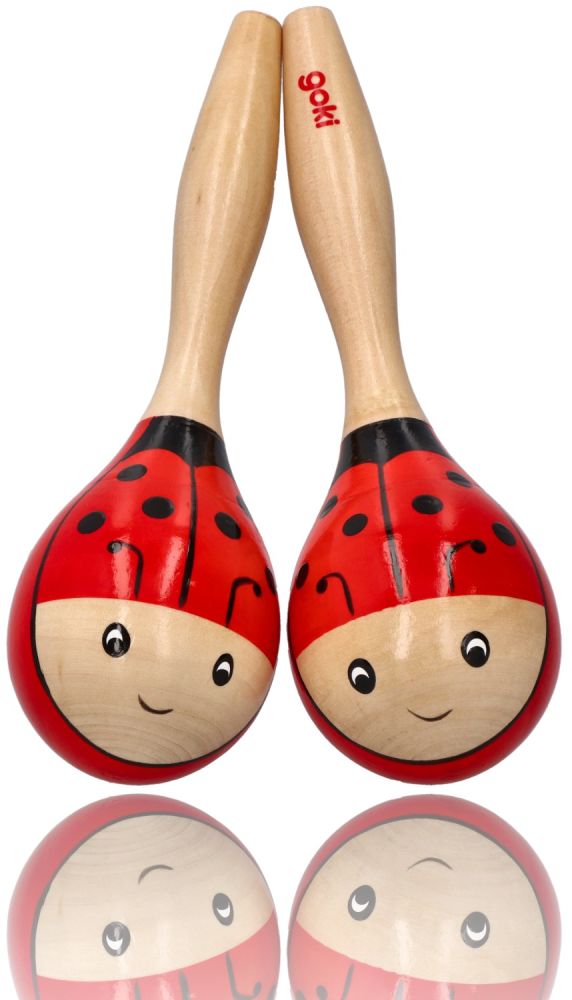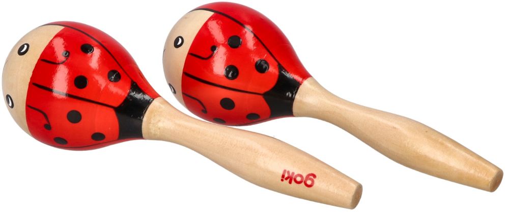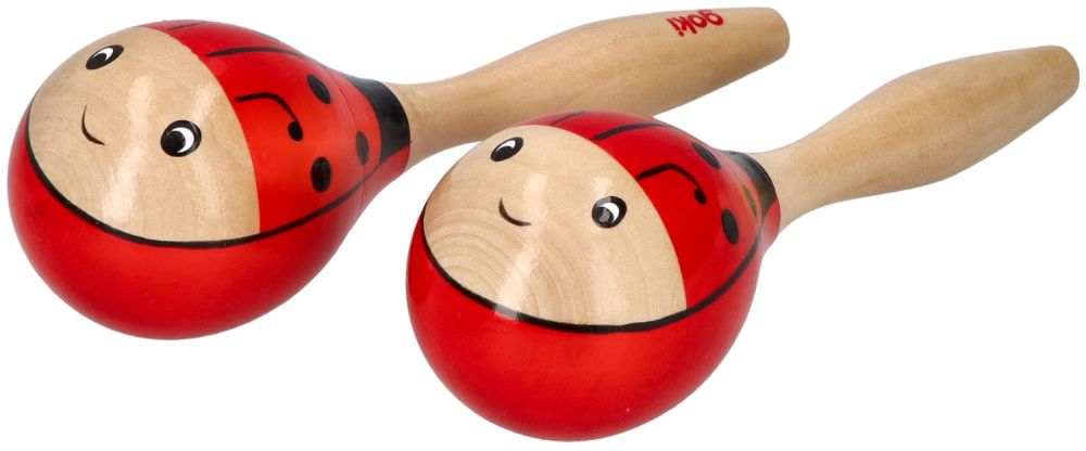 Śliczne marakasy z biedroneczką posłużą jako grzechotka lub zabawka muzyczna.