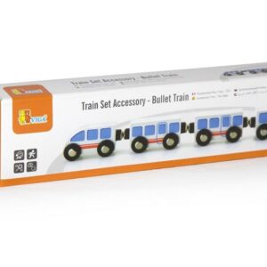 Pociąg składa się z lokomotywy oraz 3 wagoników połączonych ze sobą magnesami. Dodatkowo dla urozmaicenia każdy z wagoników wiezie inny ładunek, dzięki czemu dziecko może poznawać różnorodność kształtów i kolorów.