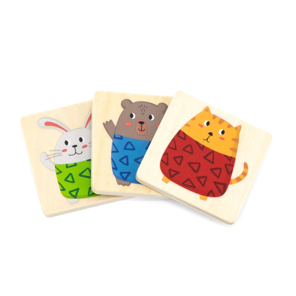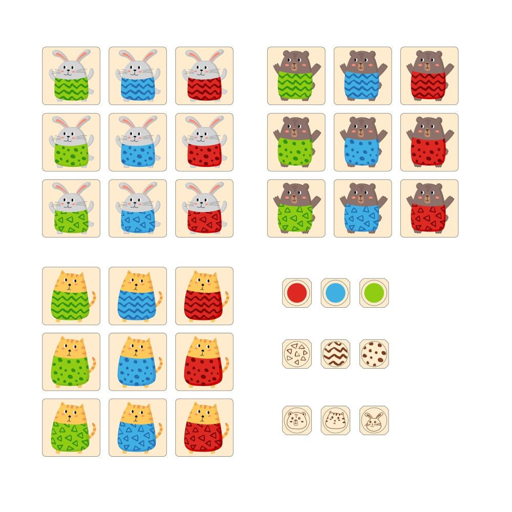 Rozłóż oraz najbardziej jak to możliwe wymieszaj elementy na podłodze lub stole. Obrazki należy umieścić zwierzakiem do góry. Istnieją 3 warianty gry, w zależności od stopnia trudności w jaki chcecie zagrać.