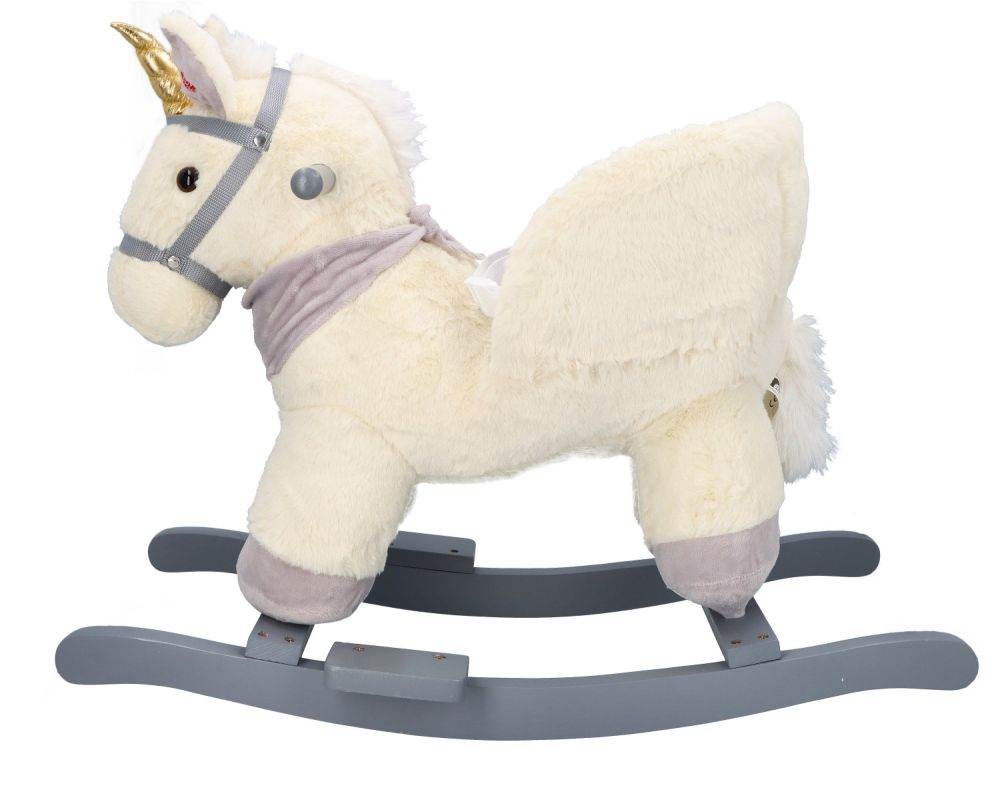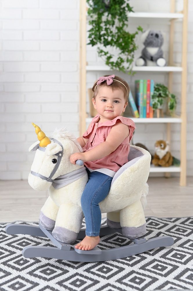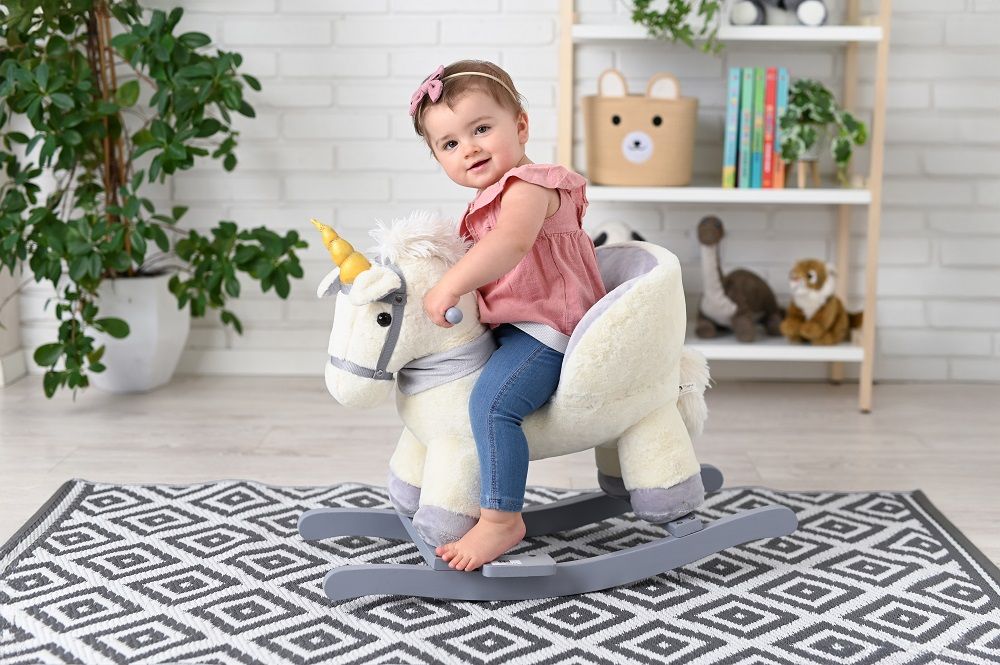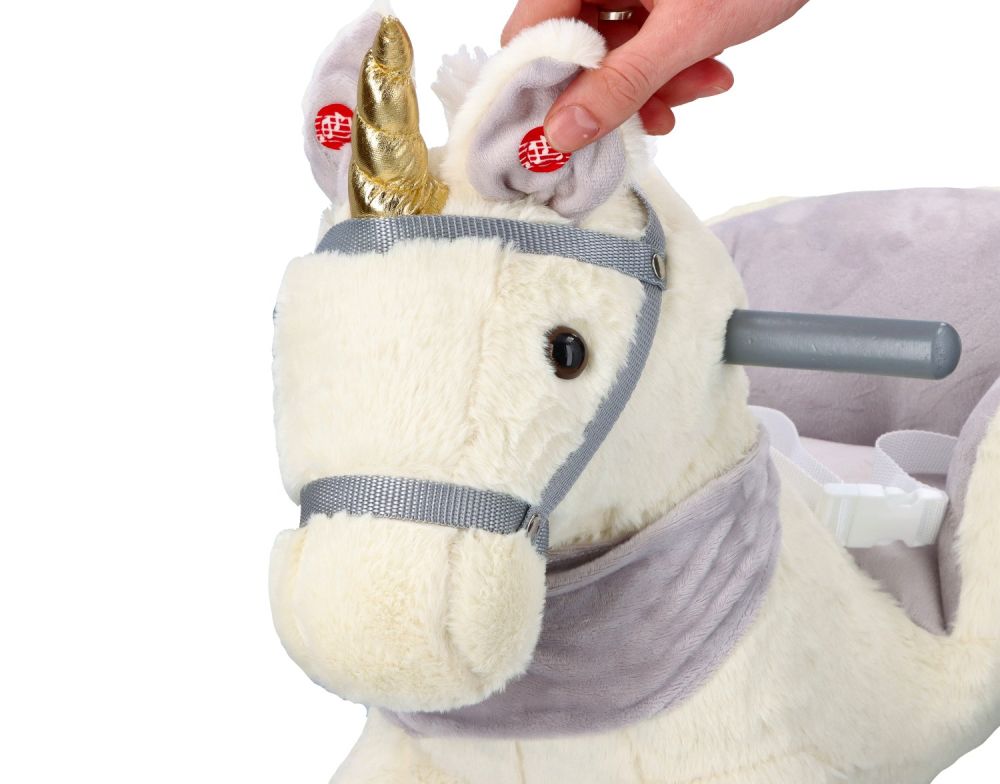 Zabawka wymaga dwóch baterii typu AA. Kieszeń z bateriami schowana pod brzuchem konia.