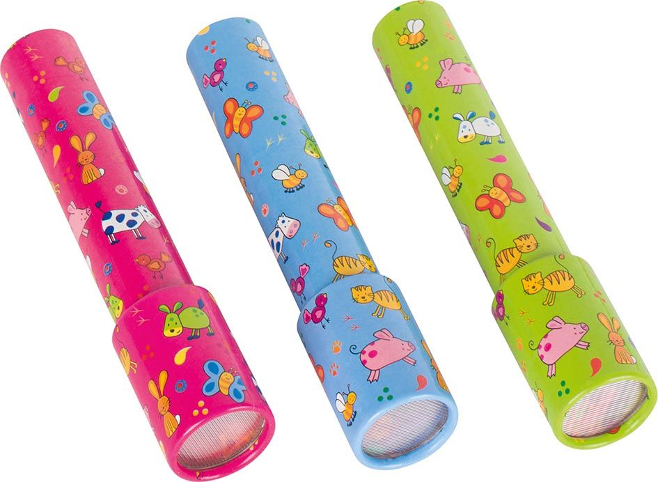 Tradycyjna zabawka zachęca do obserwacji i nigdy się nie znudzi. Podczas przekręcania obiektywu dziecko może podziwiac przemieszczanie się różnych kształtów, kolorów i obrazów.