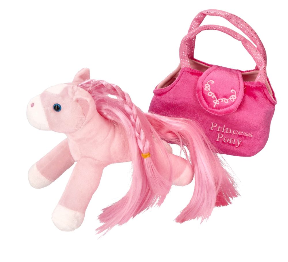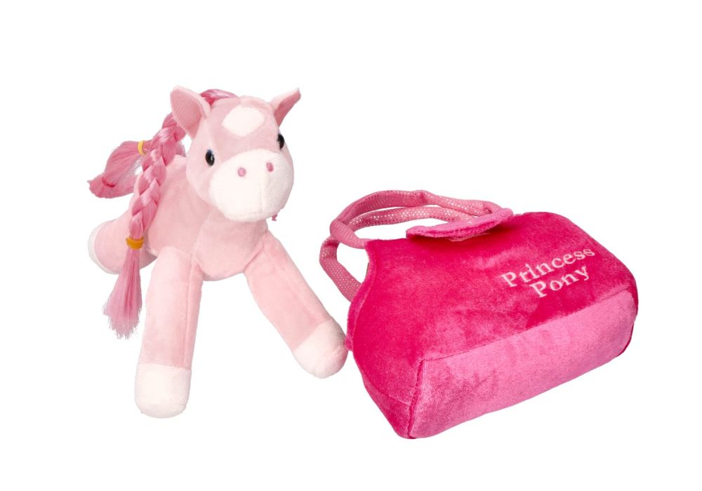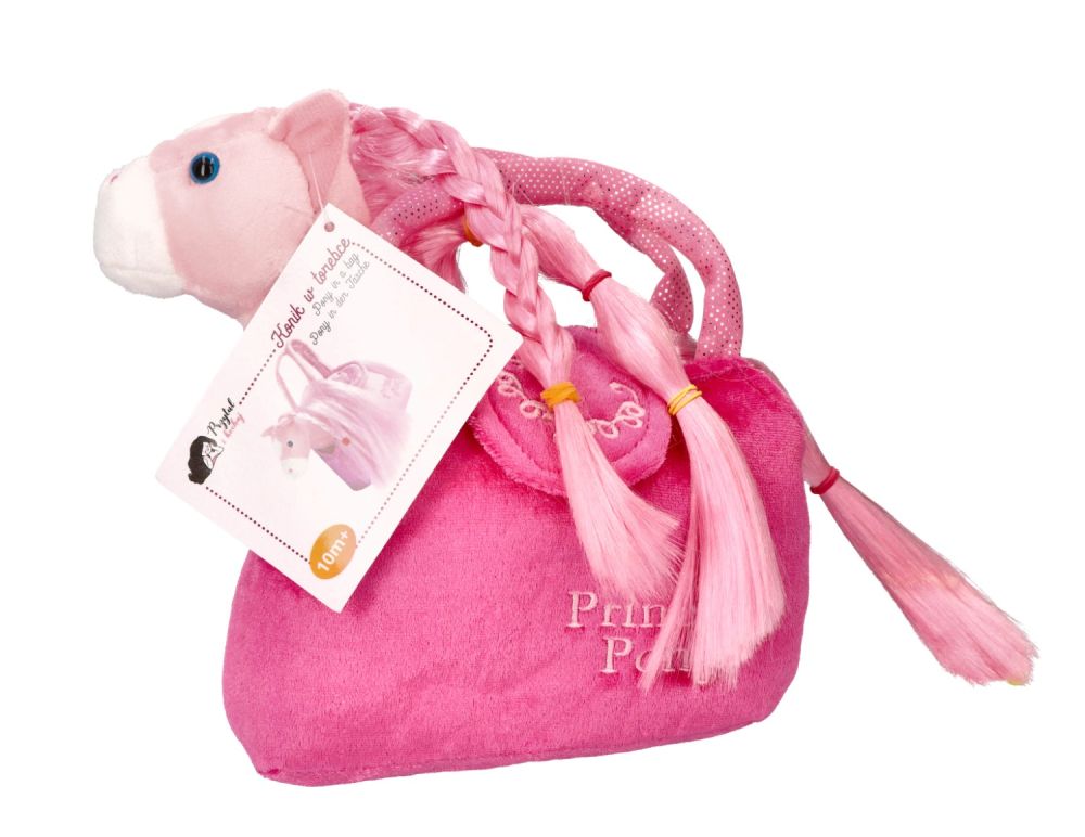 Oto konik w torebeczce dla małej elegantki. Maskotka ładnie wykonana z mięciutkiego różowego pluszu z białym pyszczkiem i kopytkami. Długi ogon i długa grzywa dodaje uroku całości i służy do zaplatania i czesania. Torebka zapinana na rzep. Ta zabawka to:
