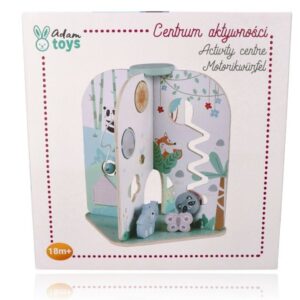 - Kolejna ze ścianek bocznych to klasyczny labirynt z motywem domku, gdzie zadaniem Waszych pociech będzie przesuwanie okrągłych elementów z jednego końca labiryntu na drugi.