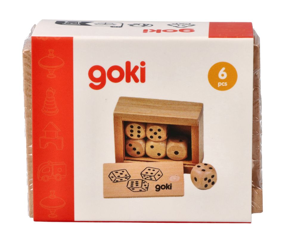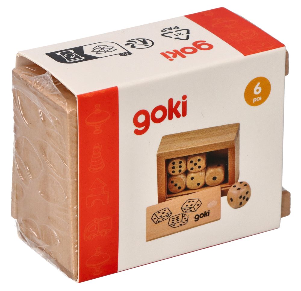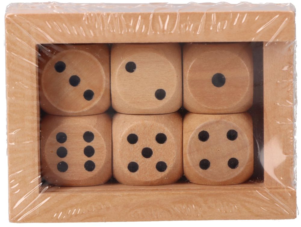 Zestaw zawiera: 6 drewnianych kostek i zamykane pudełeczko. Wymiary: 6.2 x 4.5 x 2.7 cm Referencja: HS239 Deklaracja zgodności CE