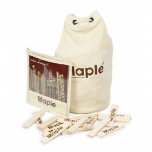 - 500 klocków MINI MAPLE oraz 5 klocków MAPLE z wypalonym logo,