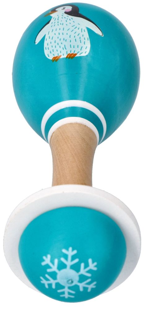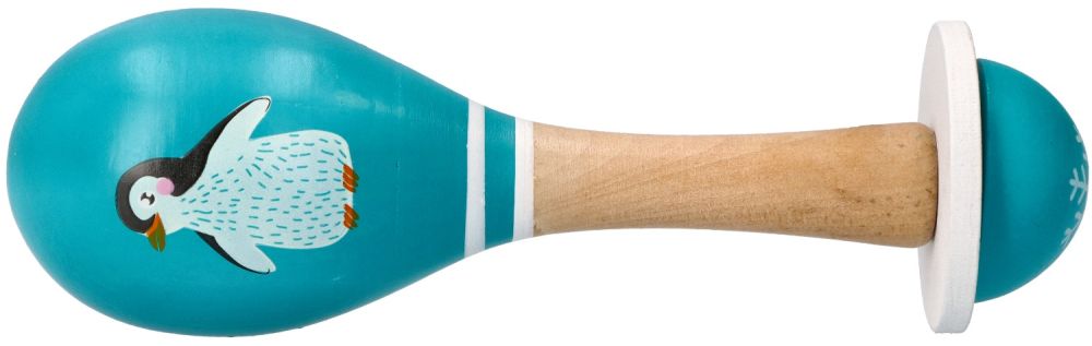 Śliczny marakas z nowej serii zwierzęta arktyczne posłuży jako grzechotka lub zabawka muzyczna.