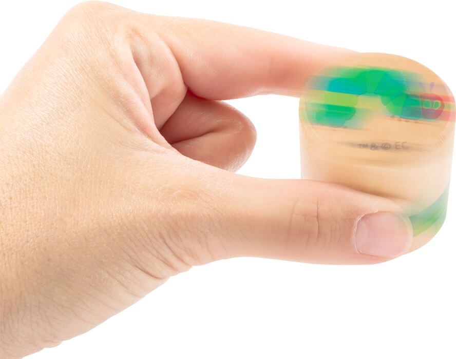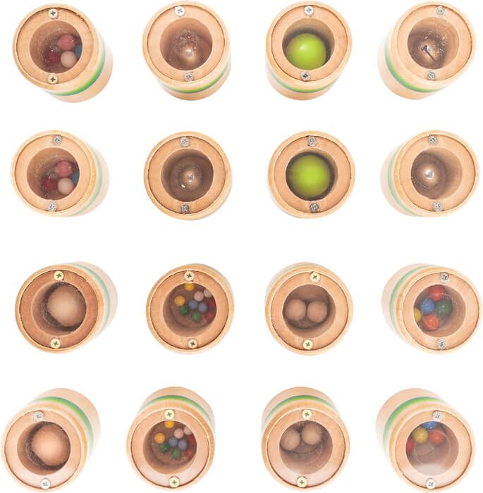 Klasyczna gra Memory, teraz w wersji dźwiękowej z motywem kolorowego robaczka. Dziecko ma odnaleźć pary, lecz tym razem używając nie zmysłu wzroku a słuchu. Chodzi o to, aby odnaleźć dwa elementy wydające taki sam dźwięk. Zasady są banalnie proste, praktycznie takie jak przy zwykłym memory z tą różnicą, że gdy podniesiecie 2 elementy musicie potrząsnąć zawartością aby przekonać się, że podnieśliście jednakową parę. Gdybyście mieli wątpliwości, zawsze możecie odwrócić kubeczek do góry nogami i zobaczyć przez przezroczystą szybkę co kryje się w środku.