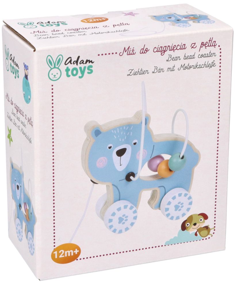 Śliczny miś to zabawka 2 w 1: zabawka do rączki, do ciągnięcia za sznureczek oraz pętla motoryczna. Najnowsze zabawki Adam Toys to również śliczna kolorystyka.