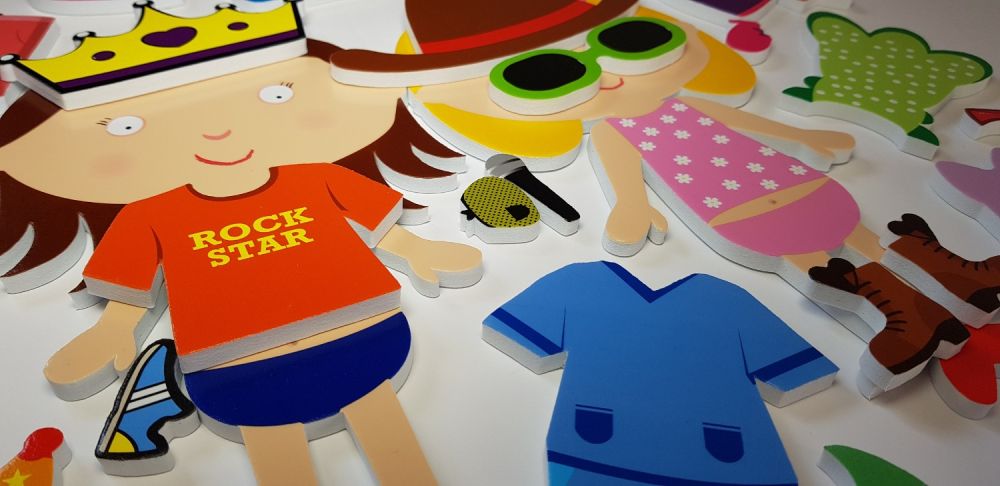 Dzięki temu, że w zestawie znajdują się dwie postacie istnieje możliwość zabawy dwóch maluchów jednocześnie. Naklejki są wielokrotnego użytku.