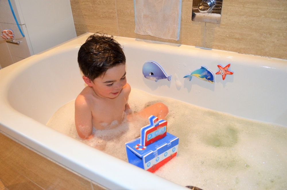 Siatka sprawia, że po zakończonej zabawie łatwo utrzymać zabawki w porządku. Wystarczy schować elementy do siatki i przyczepić do płytek, aby wyschły. Siatka wyposażona została w uchwyt na górze i dwie przyssawki.