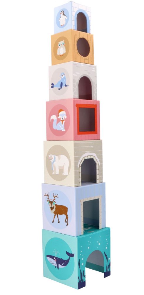 Fantastyczna propozycja marki Adam Toys. Zestaw składa się z 7 kubeczków oraz odpowiednio 7 figurek zwierzątek odpowiadających danemu sześcianowi. Każda ze ścian kubeczka oferują inną atrakcję, przykładowo: