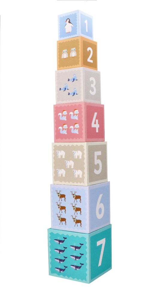 - klocki w wymiarach od największego do najmniejszego: 13, 12, 11, 10, 9, 8, 7 cm
