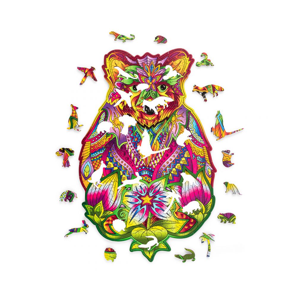 Puzzle drewniane kolorowe Niedźwiedź