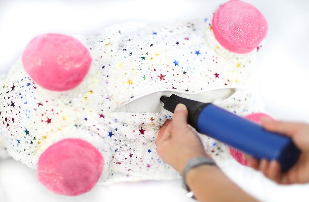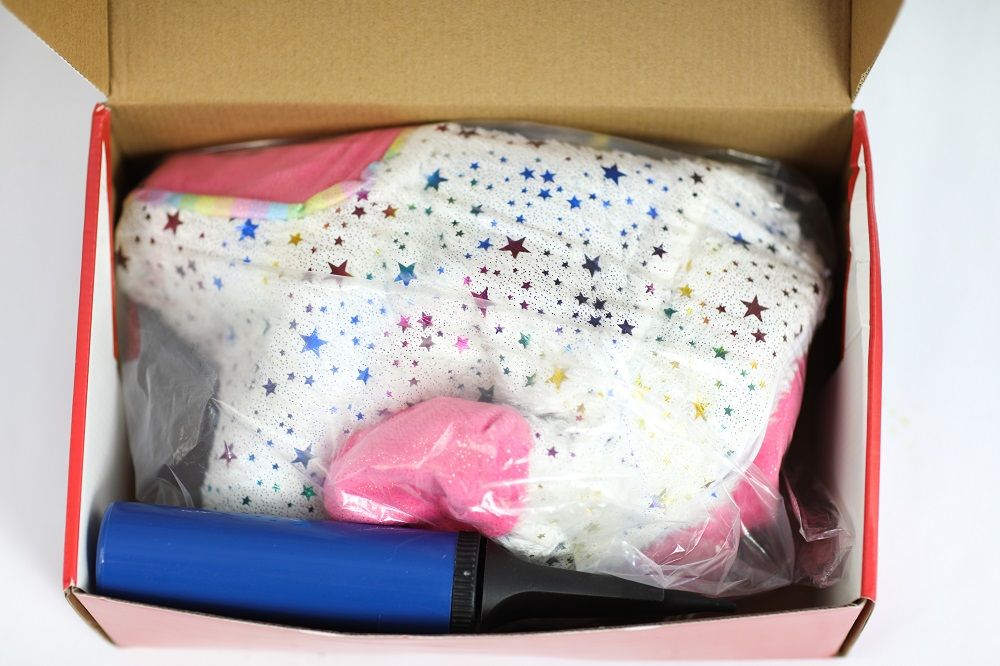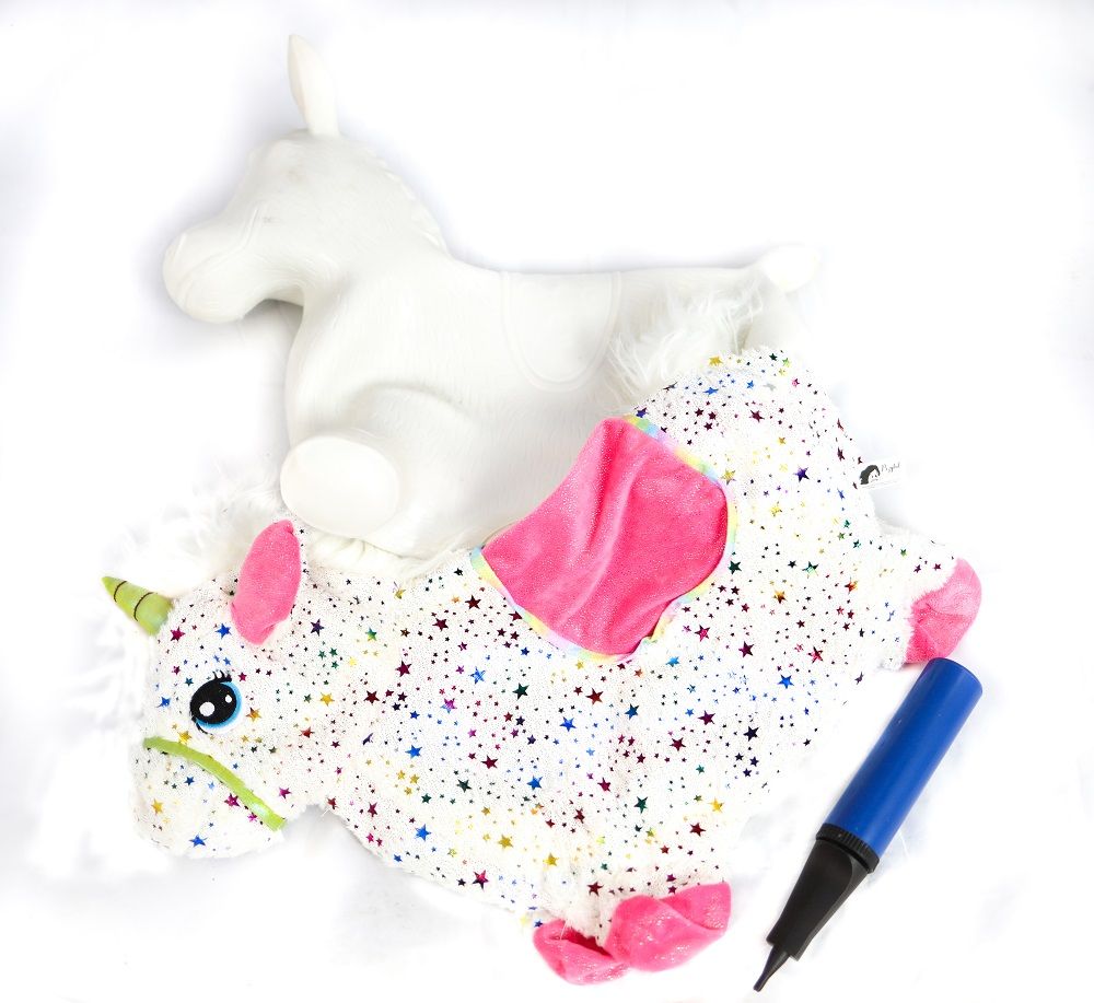 Wymiary nadmuchanego jednorożca: 60 x 50 x 25 cm Po całkowitym napompowaniu wysokość siedziska od podłoża to 28 cm Numer referencyjny: GS016 Deklaracja zgodności CE