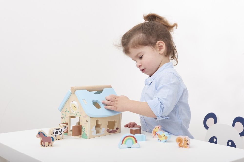 Zabawka sensoryczna w postaci sortera zapewnia wszechstronny rozwój maluszków. Z jednej strony dzieci ćwiczą koordynację ręka-oko próbując wcelować klockiem do otworu, a z drugiej myślenie i spostrzegawczość. Dzięki różnym kształtom i kolorom klocków uczą się je rozróżniać zdobywając wiedzę o otaczającym ich świecie i różnicach pomiędzy elementami.