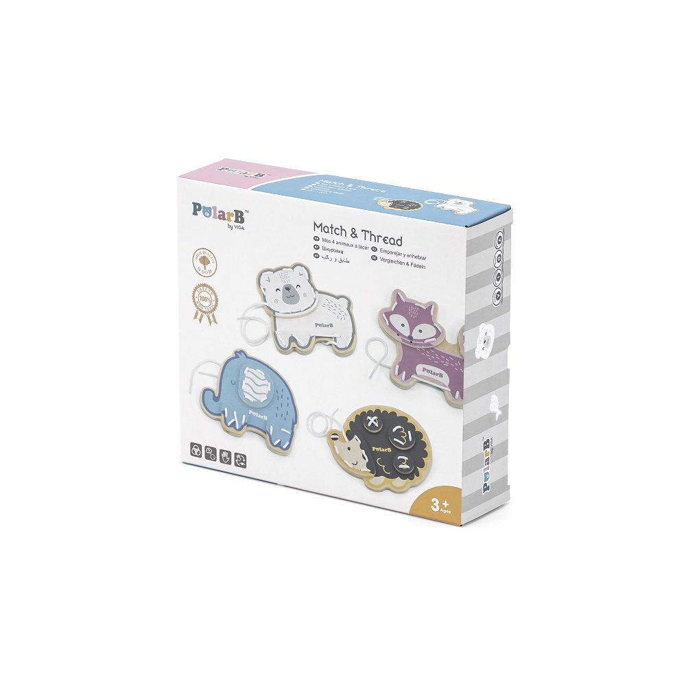 Zestaw przeplatanek w postaci 4 zwierzątek: kotek, jeżyk, piesek oraz słonik. Każde ze zwierzątek jest podzielone na poszczególne elementy, które można ze sobą łączyć za pomocą sznureczków. Wspaniała zabawa gwarantowana
