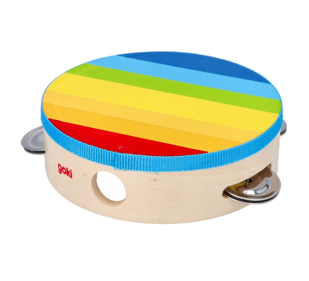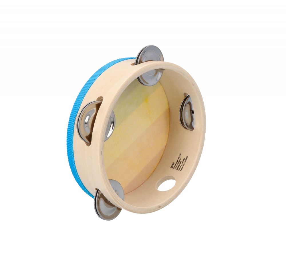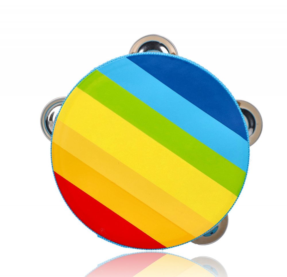 Tamburyn posiada cztery podwójne talerzyki oraz wzmocnioną mebranę. Dodatkowo w drewnianej ramie znajduje się specjalny otwór, dzięki któremu dziecko może pewnie trzymać instrument w ręku.