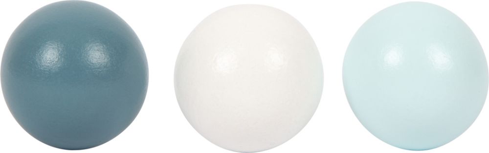 - trzy drewniane kule w kolorach: biała, błękitna oraz szara