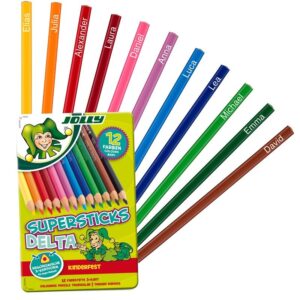 Kredki trójkątne Delta 12 kolorów w metalowym pudełku